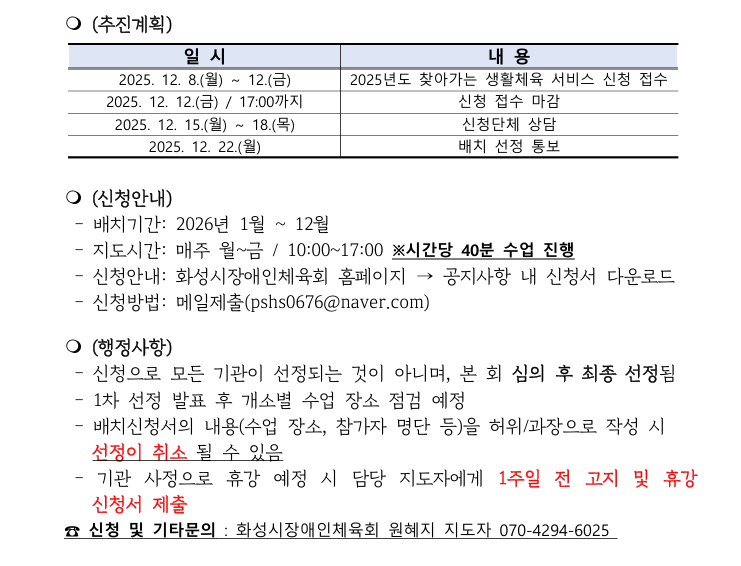 [2026년 장애인생활체육지도자 배치 안내]