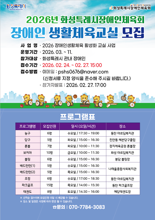 2026 장애인생활체육 활성화 교실 (모집)