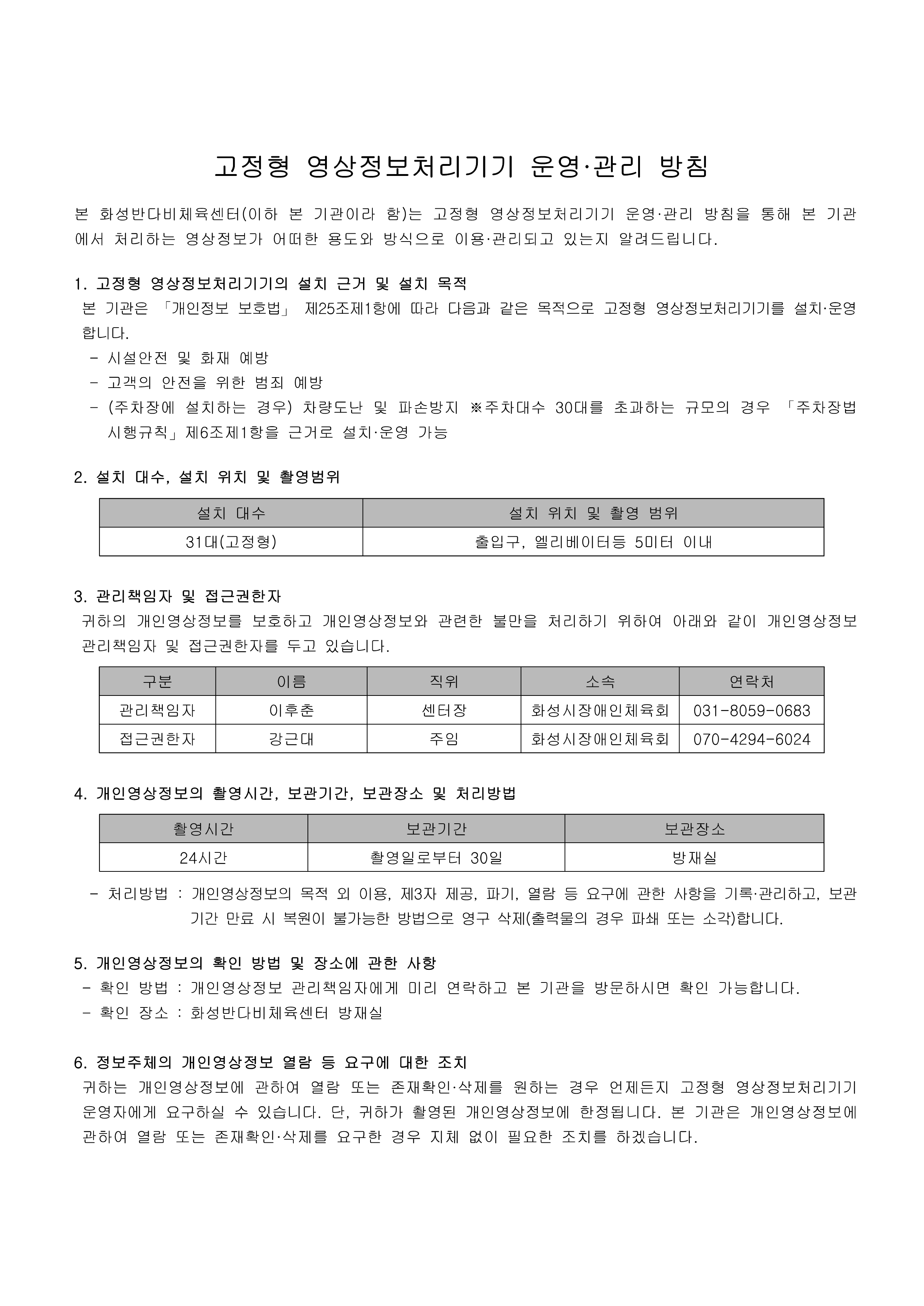 고정형 영상정보처리기기 운영 관리 방침