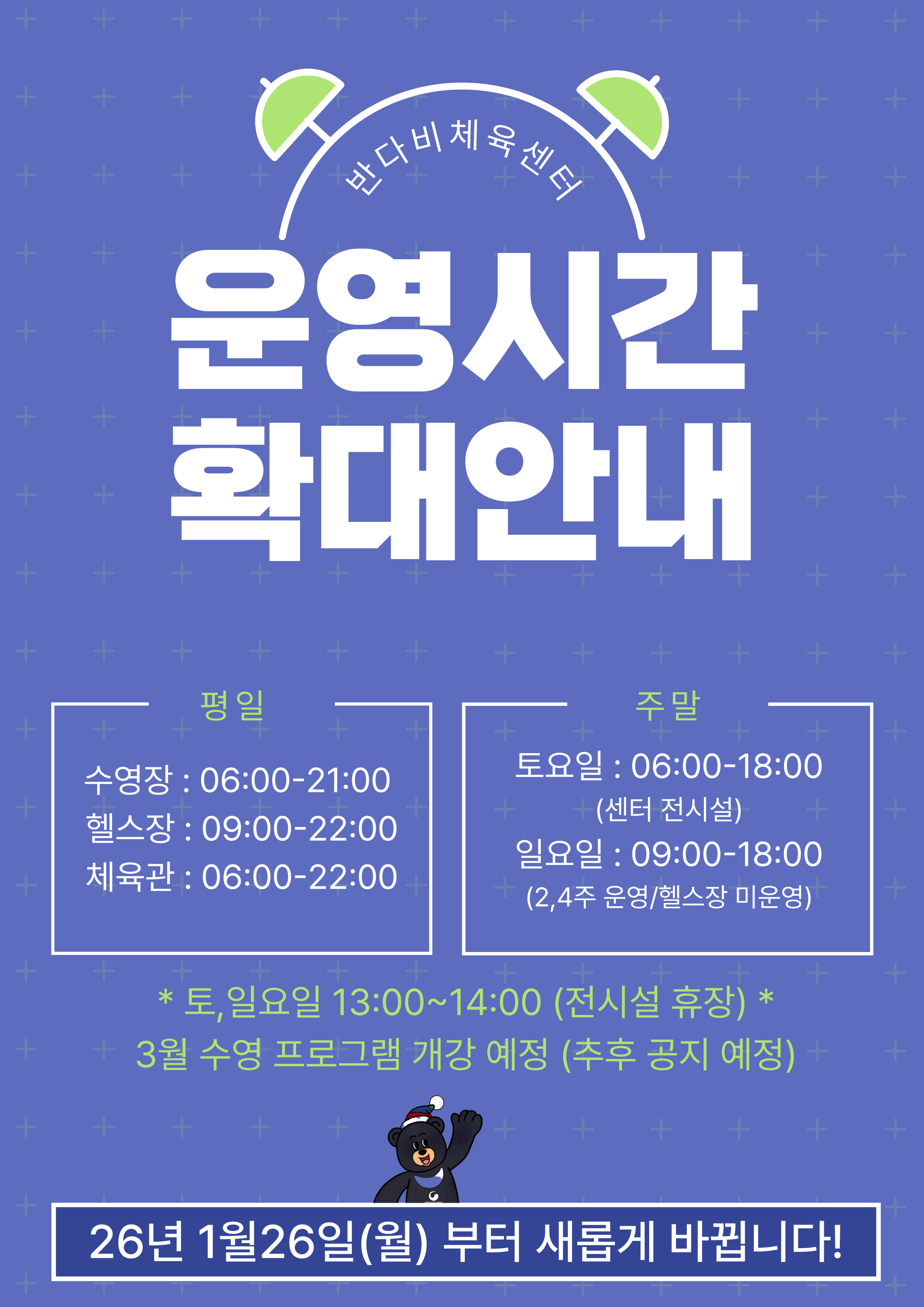 화성반다비체육센터 운영시간 확대안내