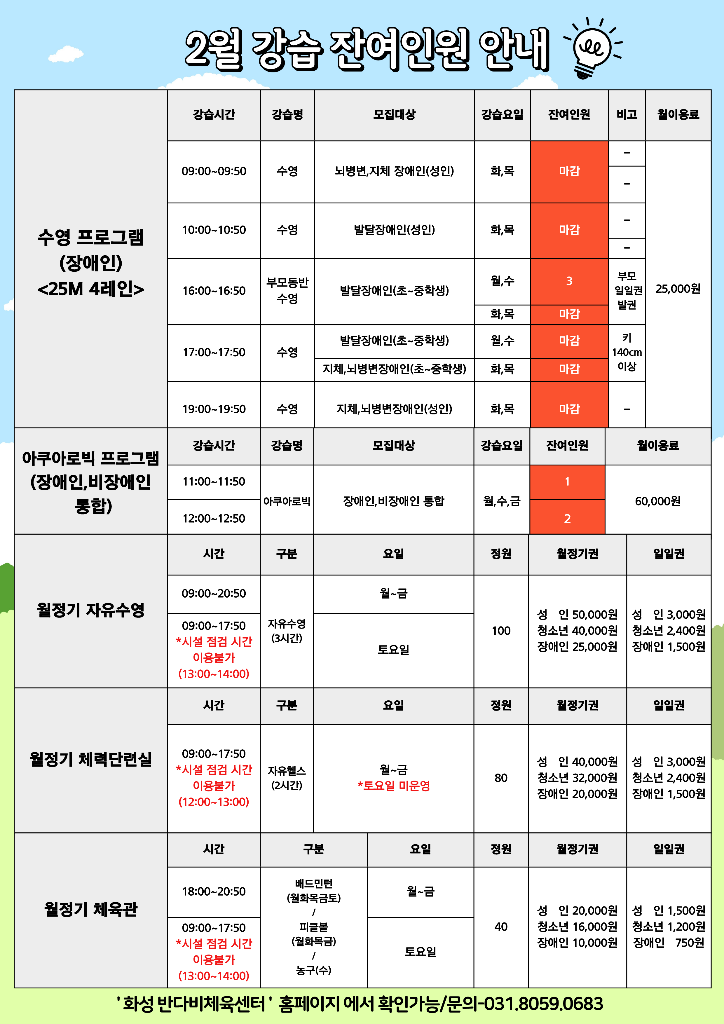 2월 프로그램 잔여인원 안내