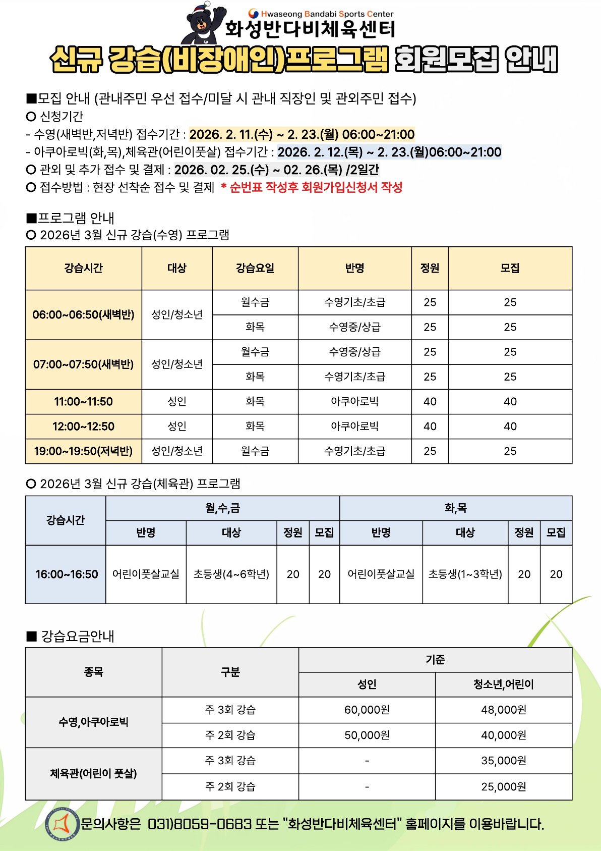 3월 신규 강습(비장애인)프로그램 회원모집 안내