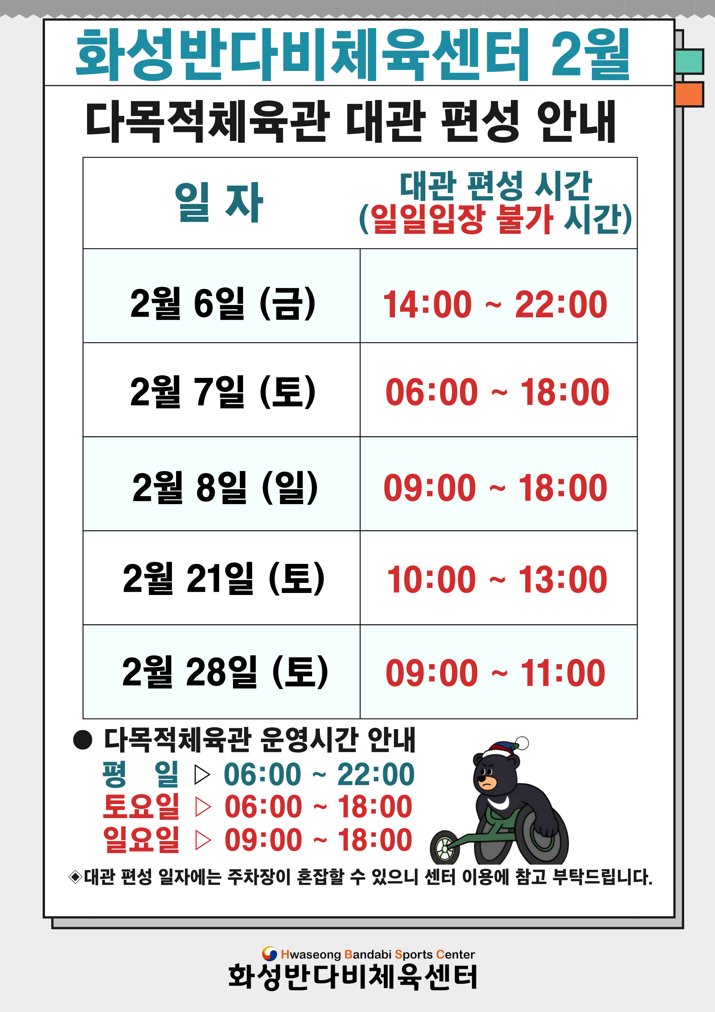 2026년 2월 다목적체육관 대관편성안내