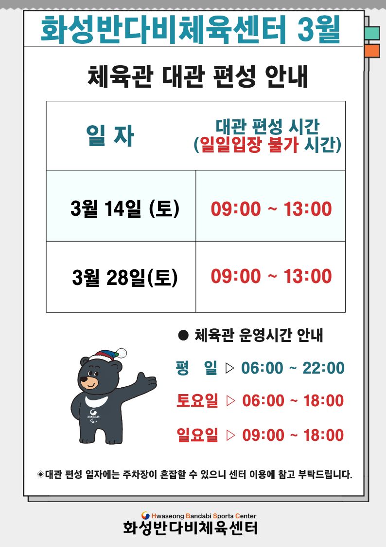 3월 체육관 대관 편성 안내