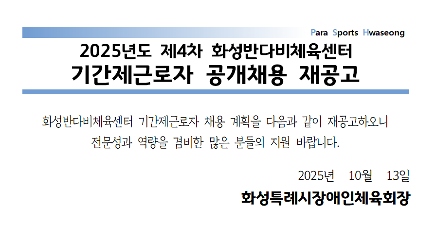 화성반다비체육센터의 소식과 주요 정보를 전해드립니다.